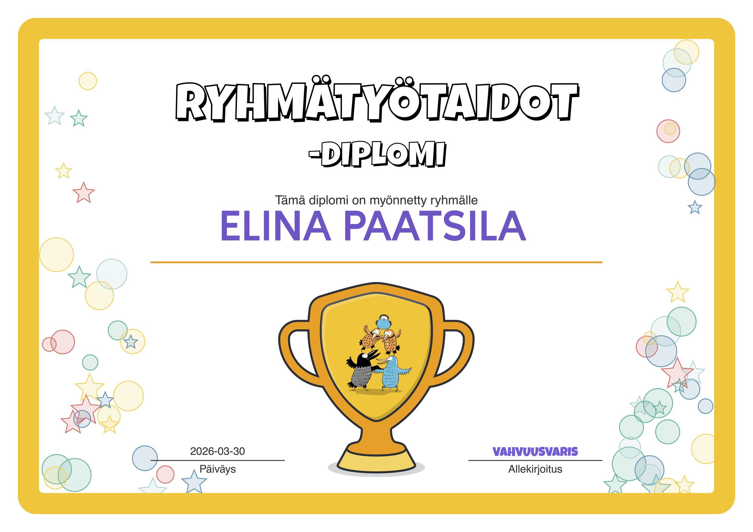 Matkaoppaananne toimii kaikkien rakastama AI-Vahvuusvaris, joka innostaa, ohjaa ja ehdottaa juuri teidän ryhmällenne sopivia oppituokioita.